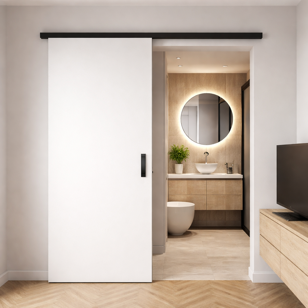 La position de la porte joue un rôle crucial dans la circulation de votre salle de bain. Une porte mal placée peut bloquer l’accès ou réduire l’espace utilisable. Optez pour une porte coulissante si votre espace est limité.