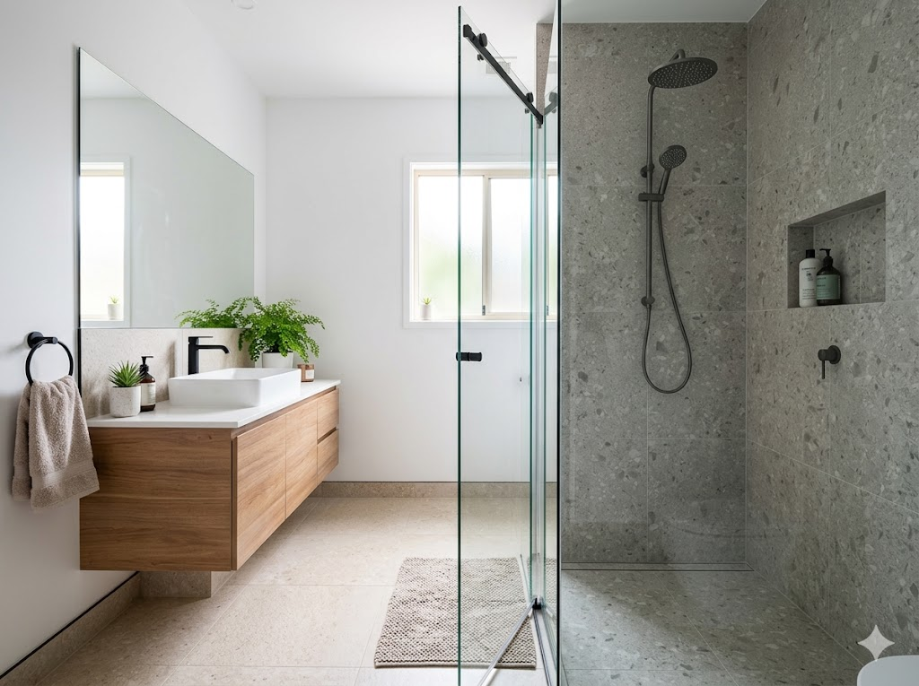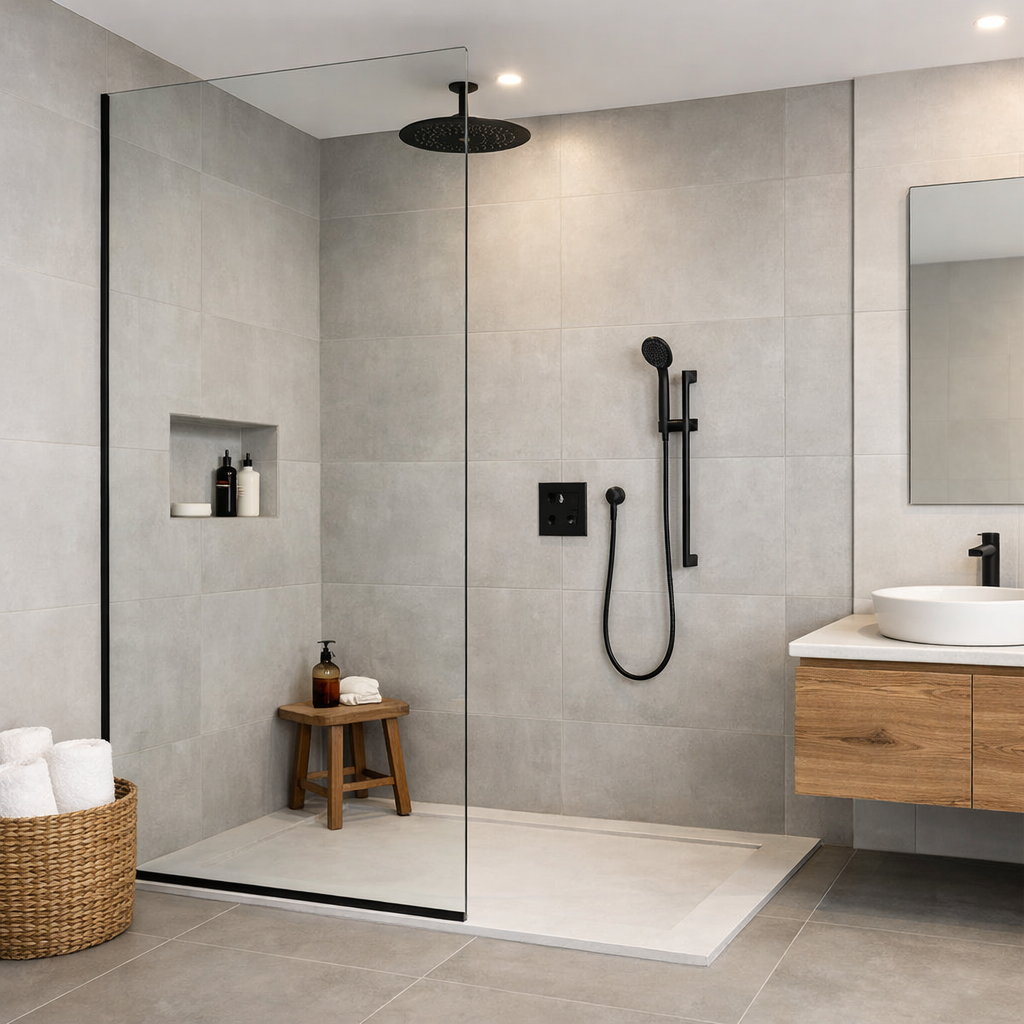 Une douche à l’italienne est idéale pour un look moderne et épuré. Elle donne une impression d’espace et facilite le nettoyage.