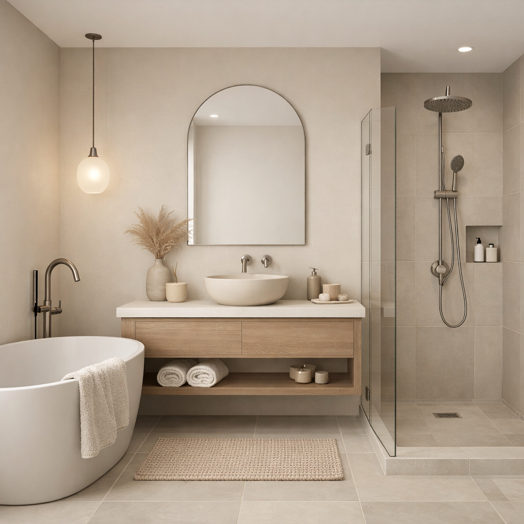 Ces 12 conseils d’aménagement de salle de bain recommandent une palette harmonieuse pour un look moderne et équilibré.