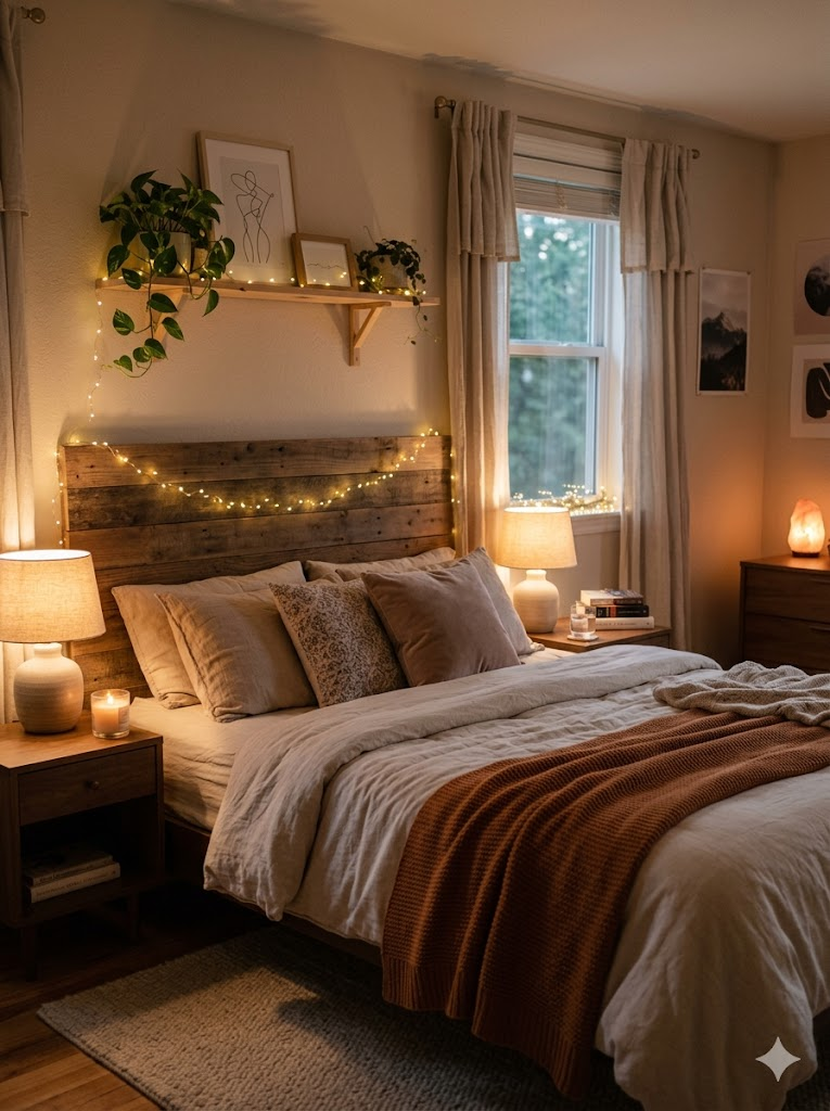 Un éclairage bien pensé transforme complètement l’ambiance d’une pièce. En multipliant les sources lumineuses, vous créez des zones de confort visuel. Cela rend votre chambre plus accueillante et parfaite pour des moments de détente en soirée.