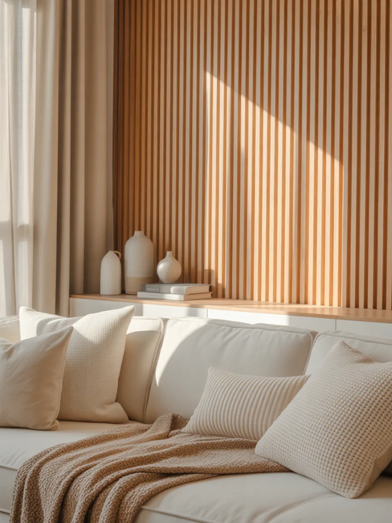 Un mur à lattes DIY est l’un des moyen Idées de lattes en bois chaleureuses et texture à votre intérieur. Ces Idées de lattes en bois chaleureuses ’intègrent parfaitement dans les salons, les chambres et les petits espaces où le style est essentiel. Avec des matériaux simples et des agencements créatifs, vous pouvez concevoir un mur qui paraît sur mesure et moderne. Des panneaux minimalistes aux murs d’accent audacieux, les lattes en bois offrent des possibilités de design infinies.
