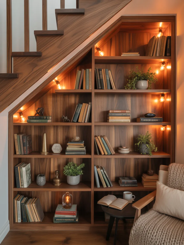 Un mur à lattes DIY dans un petit coin peut couvrir toute la hauteur du mur ou seulement la moitié. Des étagères murales permettent d’organiser les livres tout en économisant de l’espace au sol. Ajoutez des coussins et une lampe chaleureuse pour transformer un coin inutilisé en espace fonctionnel.