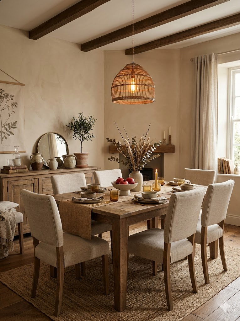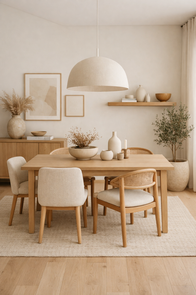 Les Idées de salle à manger chaleureuse recommandent des décorations simples mais élégantes qui complètent l’ambiance sans surcharger la pièce. Cela apporte du caractère tout en restant harmonieux.