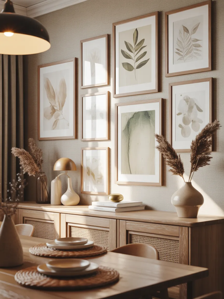 Les murs ne doivent pas être négligés. Ajoutez des cadres, des miroirs ou des œuvres d’art pour personnaliser votre espace.