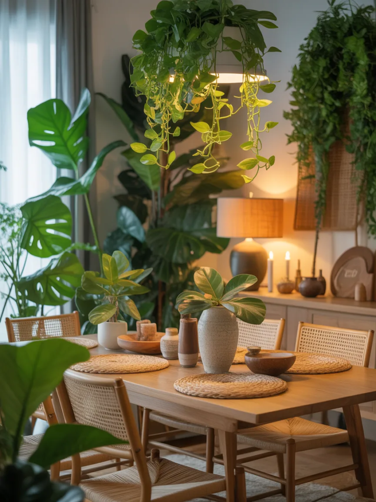 Dans les Idées de salle à manger chaleureuse, elles sont utilisées pour renforcer la connexion avec la nature et rendre l’espace plus accueillant.